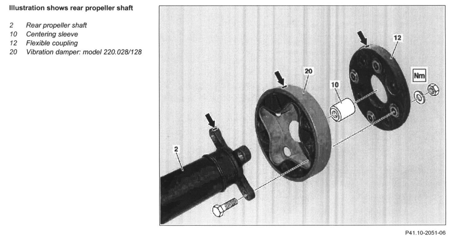 NOTE: Installation: Mount vibration damper (model 220.028/128) (20) and propeller shaft as per labeling