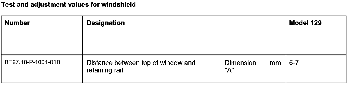 Test And Adjustment Values For Windshield: