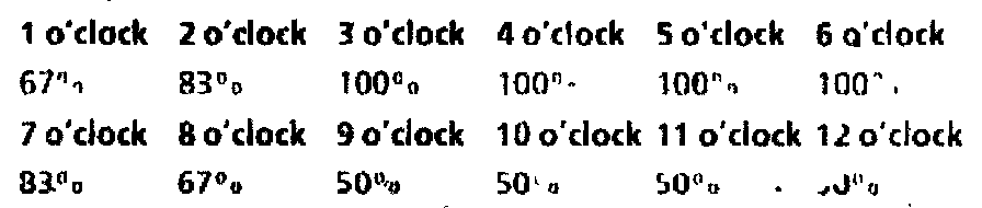 (air distribution switch position indicated by hour hand position on 12 hour clock)