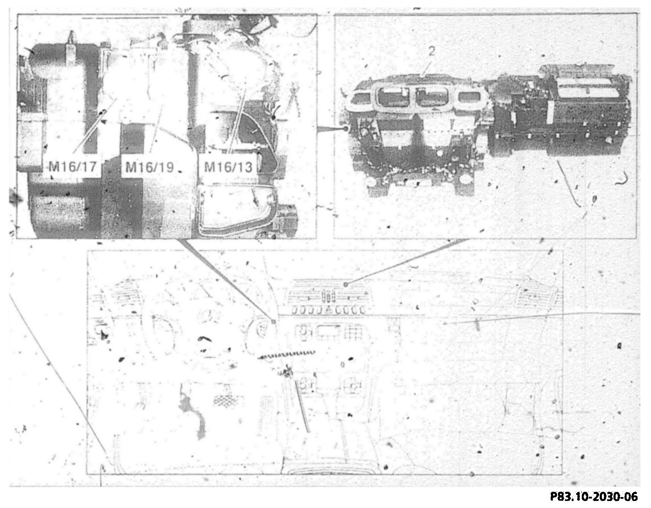 The left blend flap actuator motor (M16/19) is located on the side of the A/C housing.