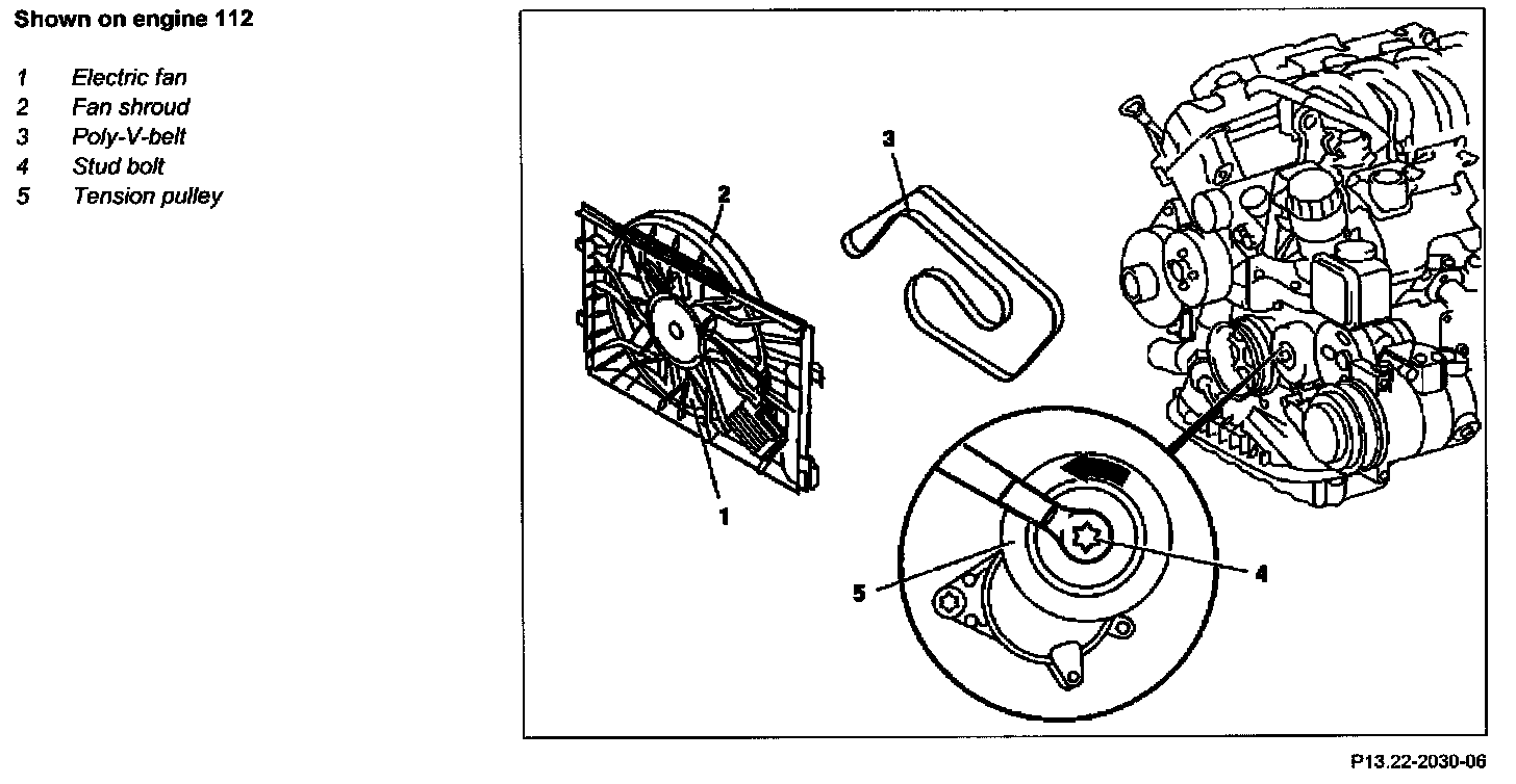 - Start at tensioning pulley in the numbered sequence of the respective running diagram: Running diagram of poly V-belt