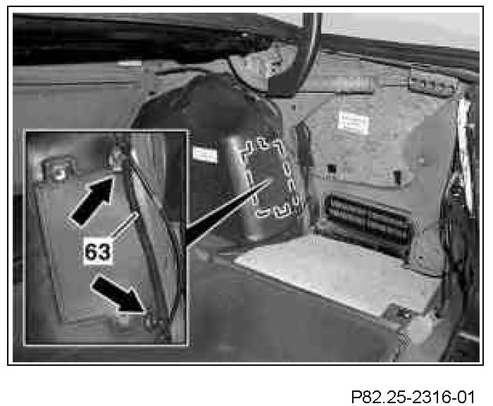Mount special vehicle multifunction control module (MSS) (N26/9) on existing studs and secure with M6 nuts supplied (see arrows).