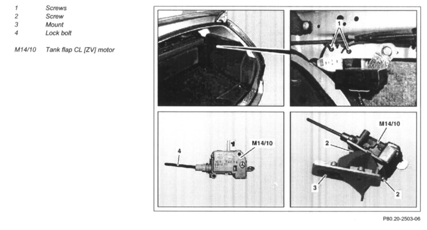 - Only when replacing tank flap CL [ZV] motor (M14/10).
