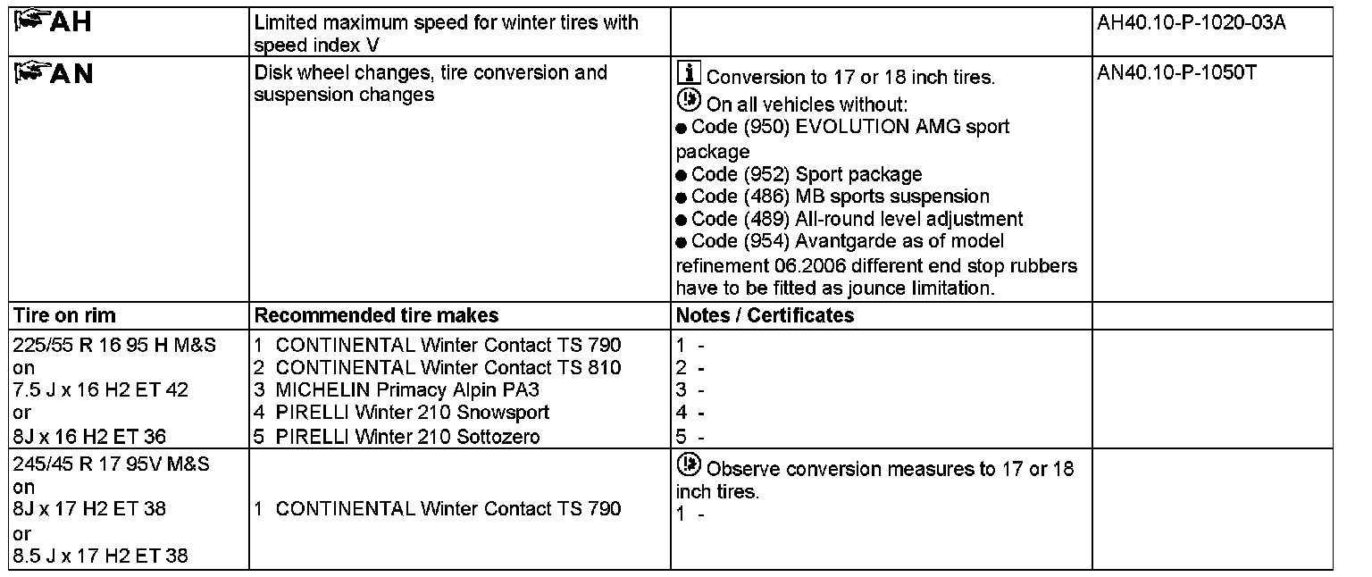 All the wheel/tire combinations listed here may only be fitted without further reason when they are listed in the registration papers under items 20 to 23 and 33 or the Technical Inspection Association experts' reports are ready.