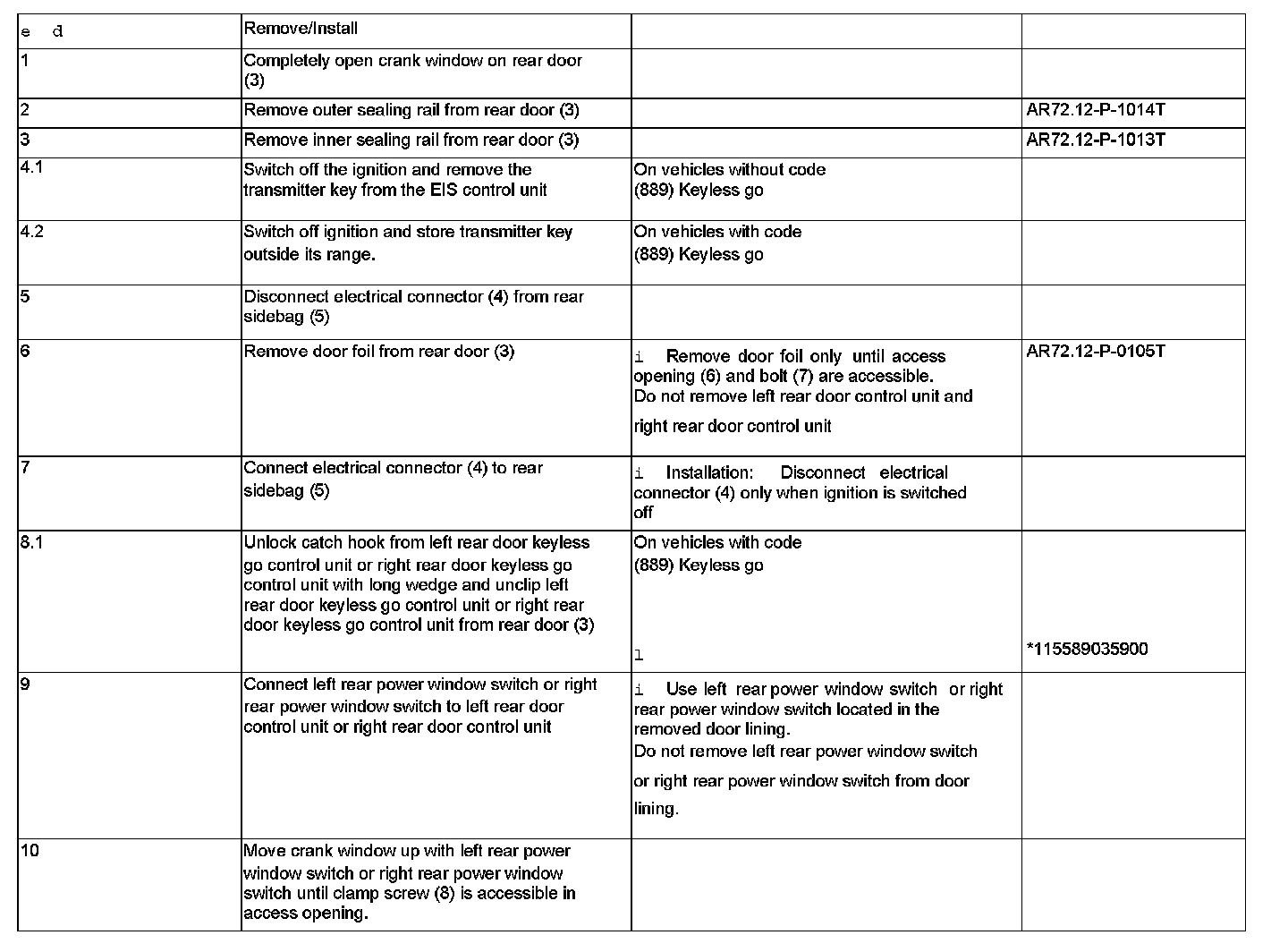 AR72.12-P-1970TA Remove/Install Fixed Window In Rear Door