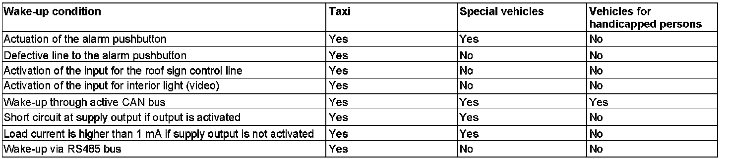 Different wake-up conditions apply to taxis, special-purpose vehicles and vehicles for handicapped persons: