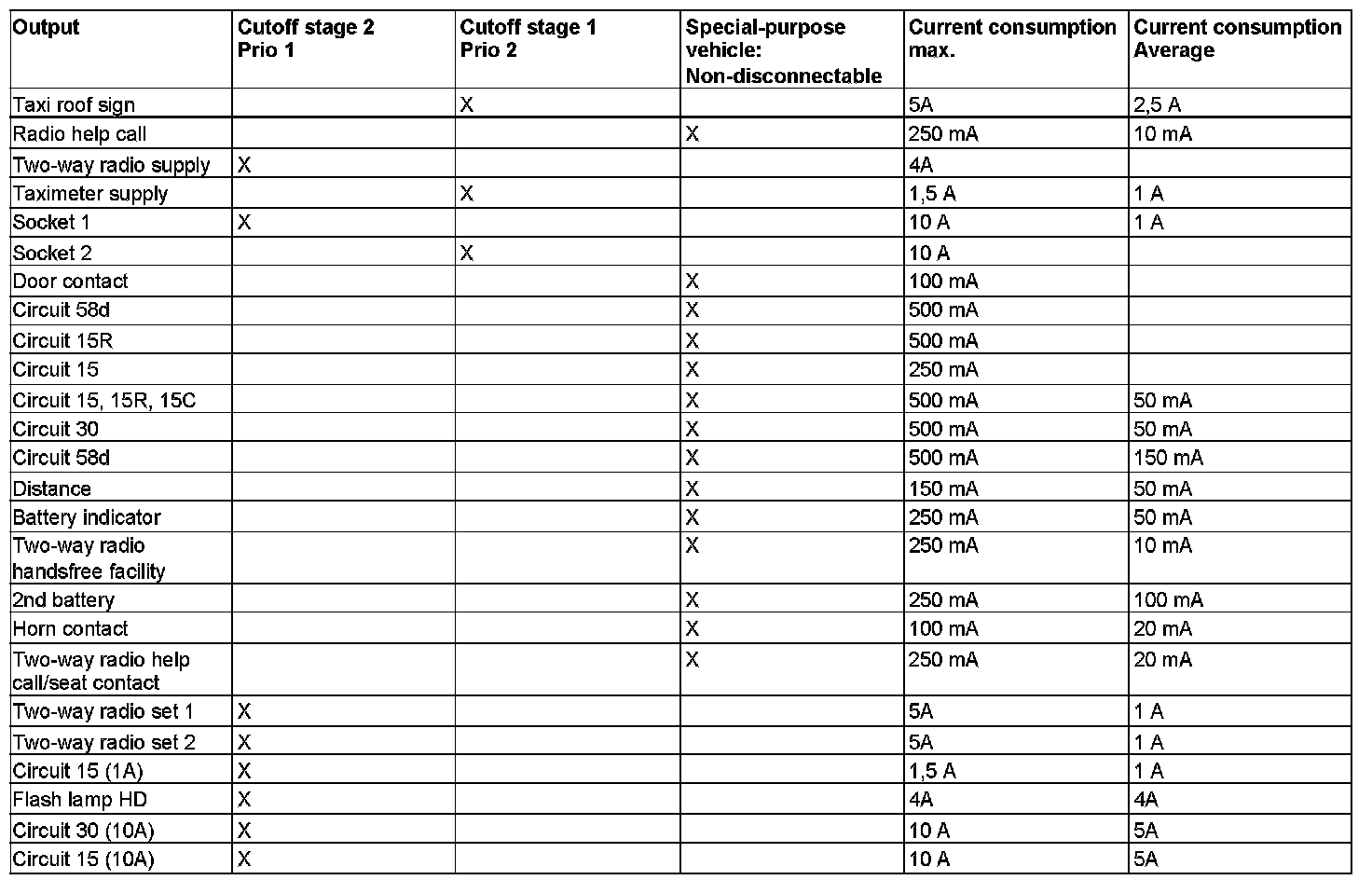 The signals for the consumer cutout are put on the CAN interior by the central gateway control unit (N93). The switch-off stages are differentiated between two priority stages.