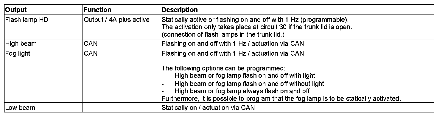 ^ If the high beams and fog lamps are activated together via the CAN interior, they will flash on and off alternately. Furthermore, in the special vehicle multifunction control unit (SVMCU [MSS]) (N26/9), it is possible to program the duration (brightness phase) during which the two light sources are to be activated while flashing on and off.