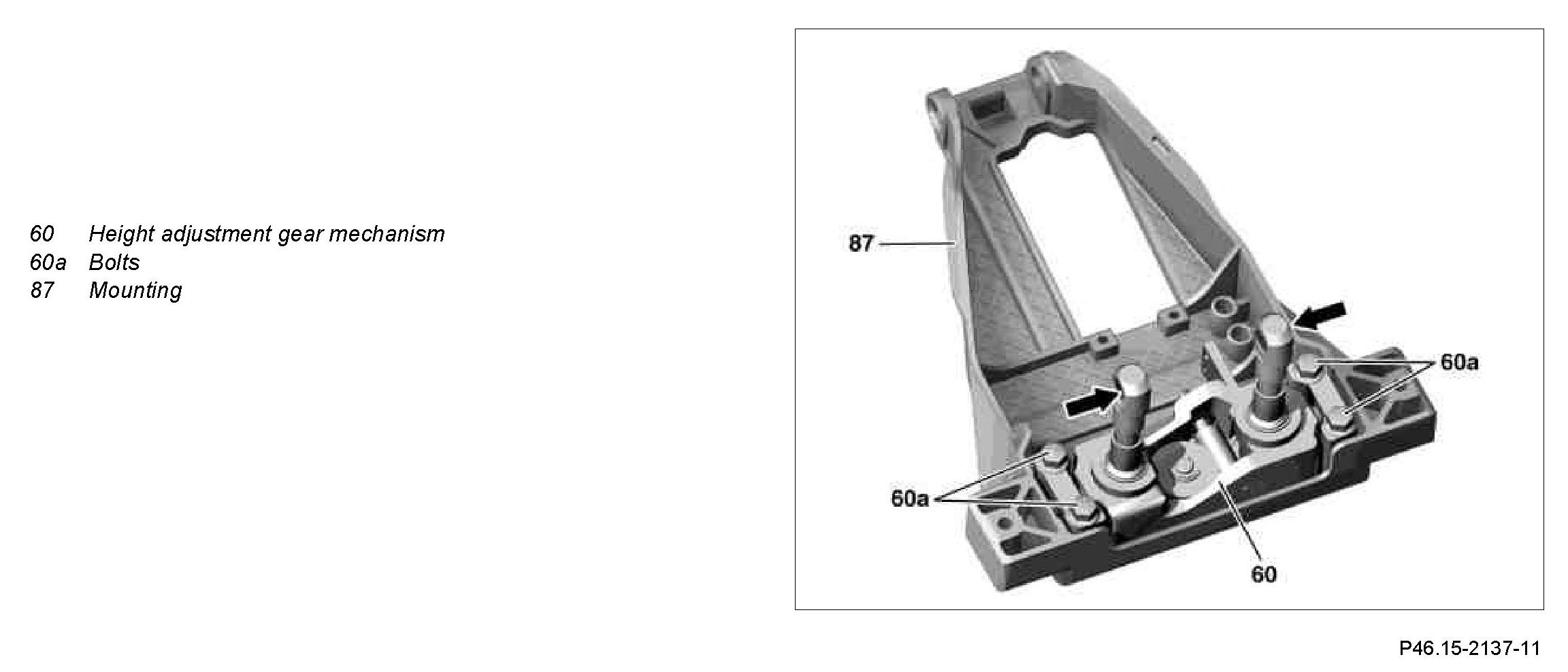 1 Remove bolts (60a) of height adjustment gear mechanism (60) and remove height adjustment gear mechanism (60) from mounting (87).