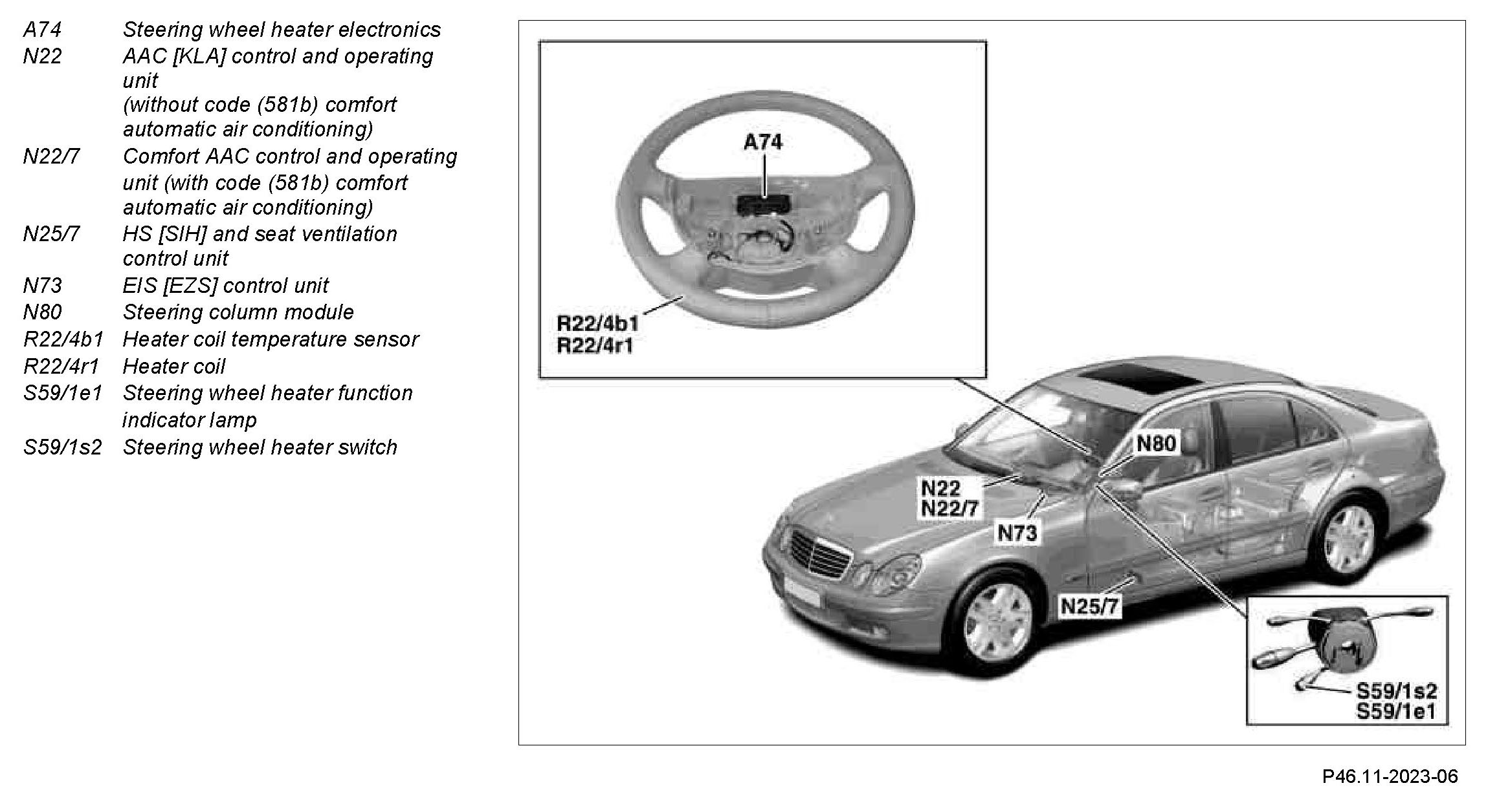 GF46.11-P-0001-03TA Steering wheel heater (LRH), location of components