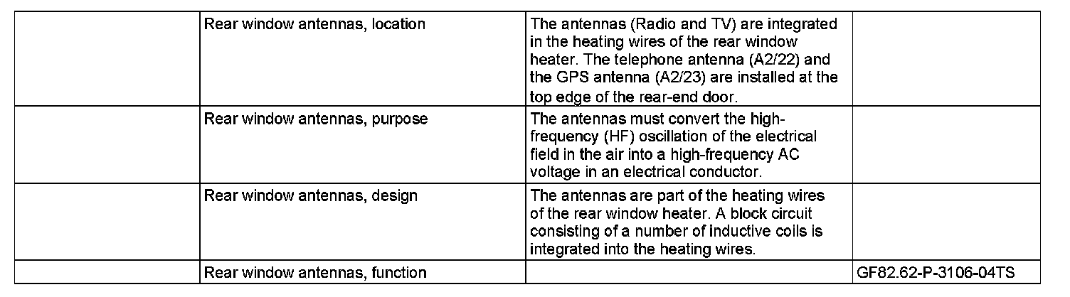 GF82.62-P-3106TS Rear Window Antenna Location/Task/Design/Function