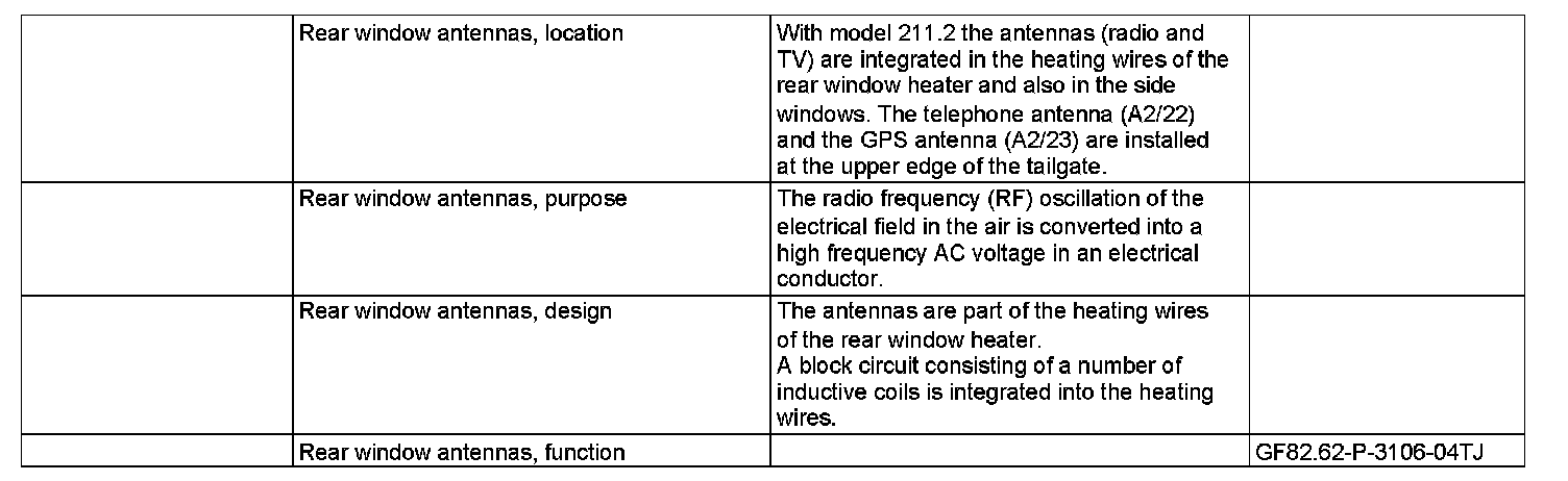 GF82.62-P-3106TSJ Rear Window Antenna Location/Task/Design/Function