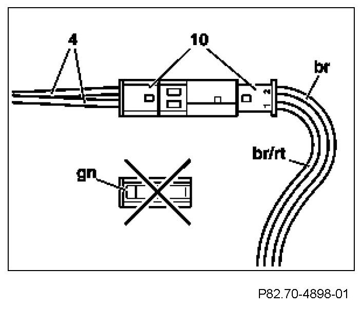 19 Insert the removed brown line (br) into the supplied blue connector housing in chamber 2. Insert the brown/red line (br/rt) into chamber 1. Close the blue connector housing (10) and connect to the blue plug housing of the CAN wiring harness (4).