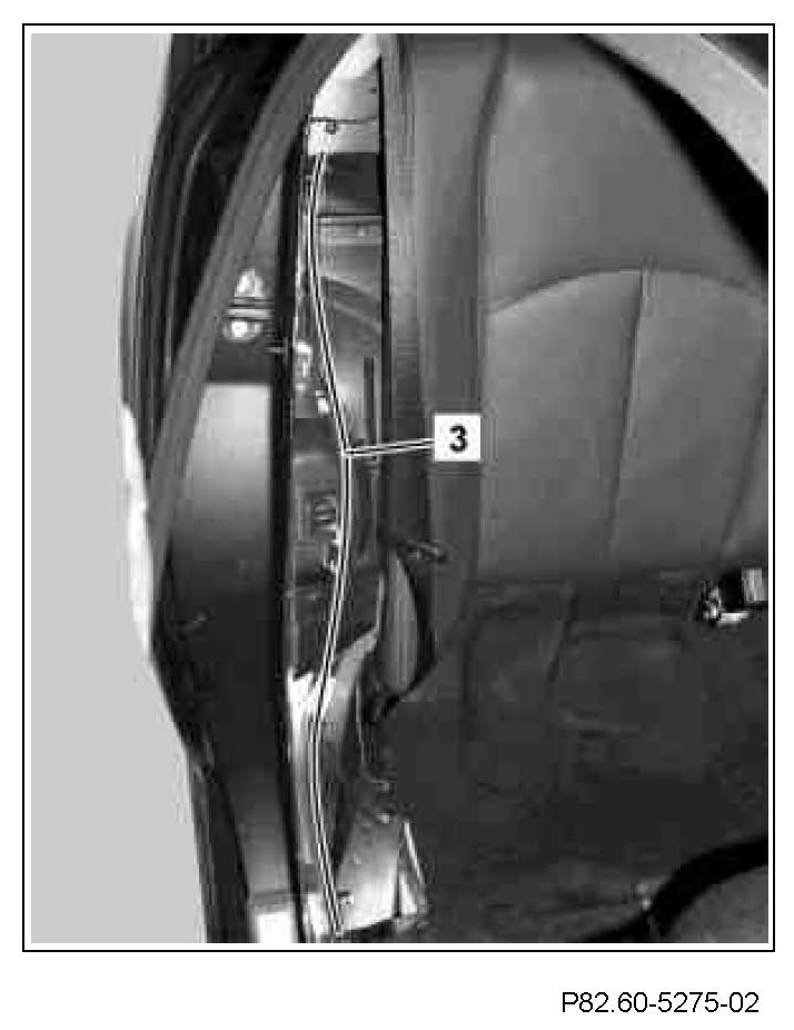 10 Route FSE 12 wiring harness (3) on the right wheelhouse into the right luggage compartment and fasten in place using cable ties.