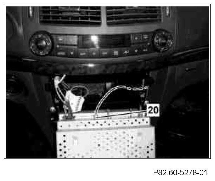 22 Connect plug (20) of branch-off line to the COMAND operating, display and controller unit (A40/3).