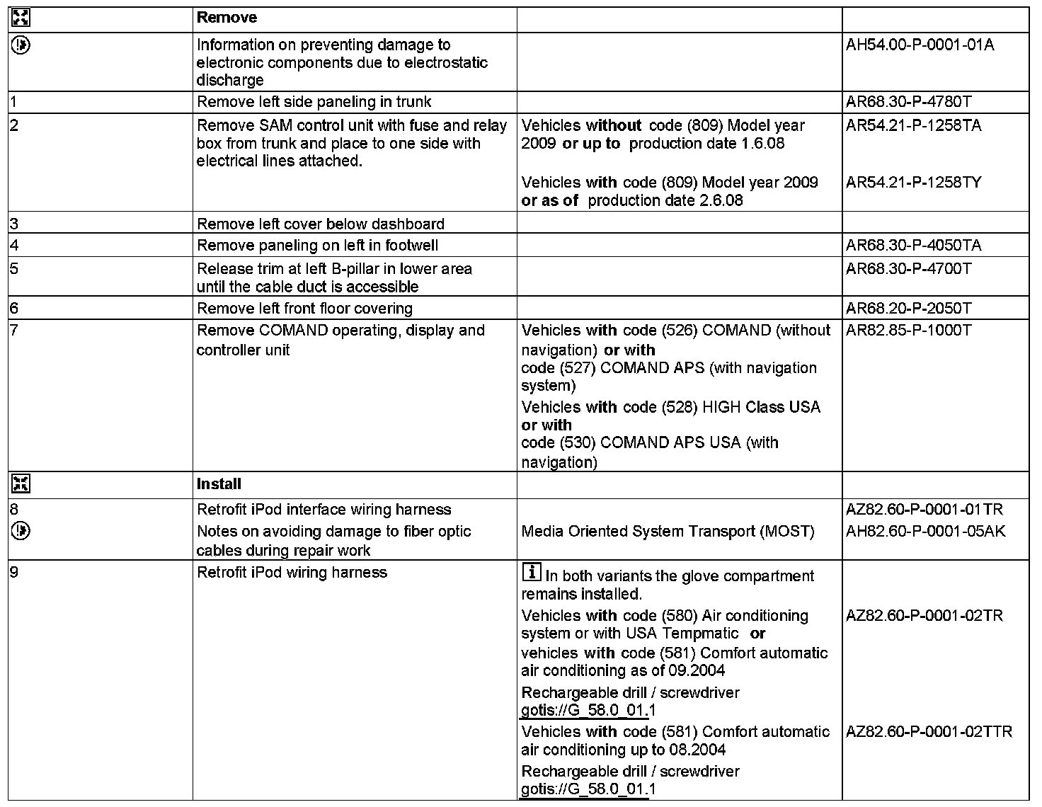 - with CODE (526) COMAND (without navigation)