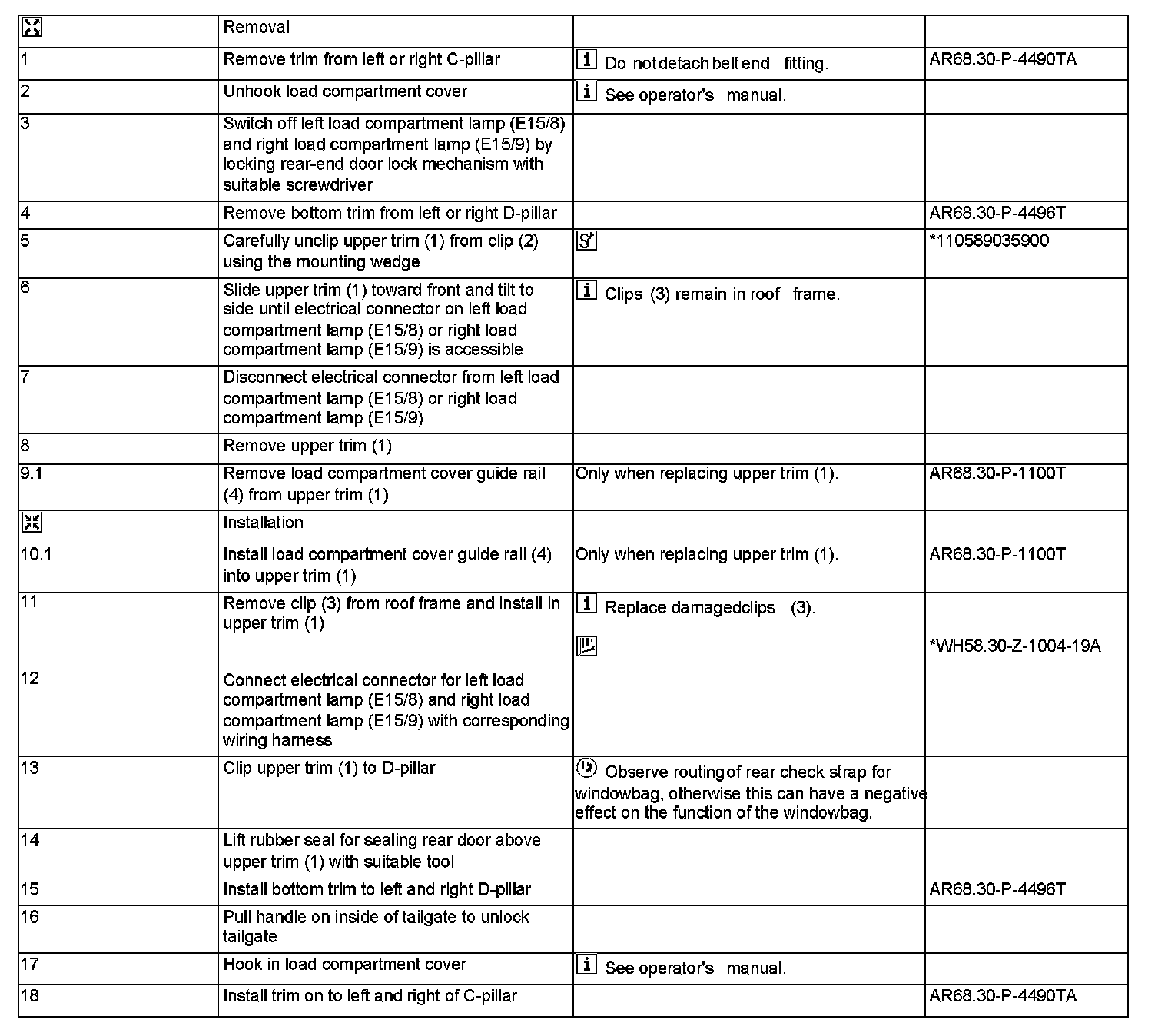 AR68.30-P-4495T Remove/Install Trim on D-Pillar