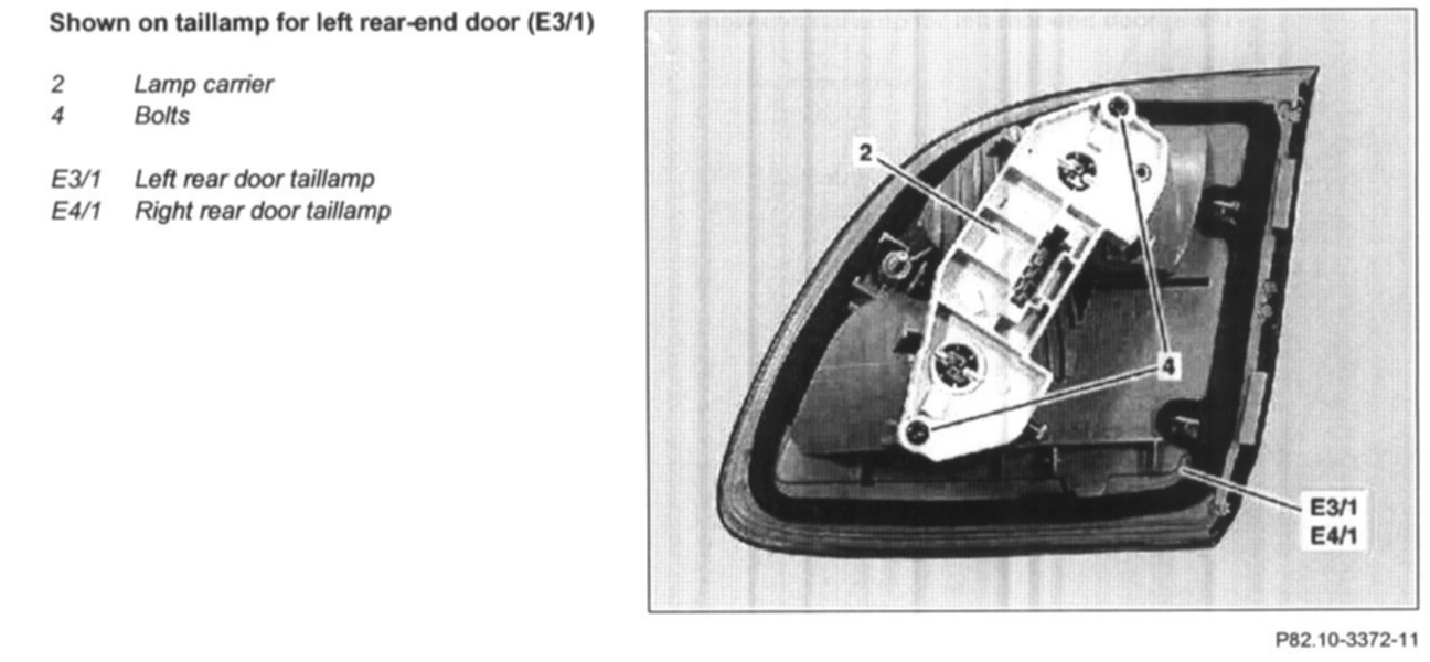 - Only applies to removal of lamp support (2) of left rear-end door taillamp (E3/1) or right rear-end door taillamp (E4/1)
