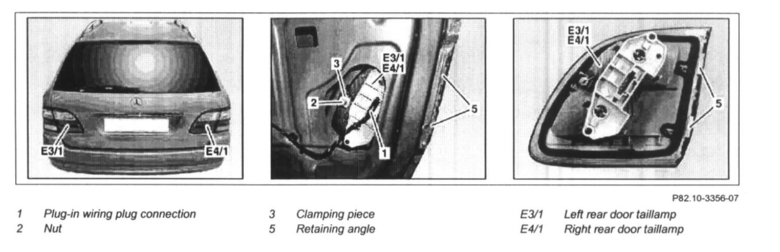 4 Remove left rear-end door taillamp (E3/1) or right rear-end door taillamp (E4/1) from rear-end door