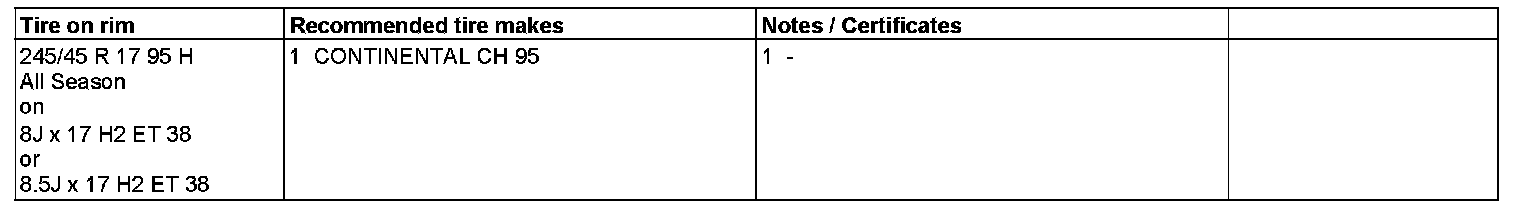 The recommended wheel/tire combinations apply only when the dimensions are entered in the vehicle documentation at the factory or when a corresponding part certification is present. For tire/wheel combinations not entered in the registration certificate and certificate of conformity, a corresponding part certificate or approval certificate is to be given to the customer.