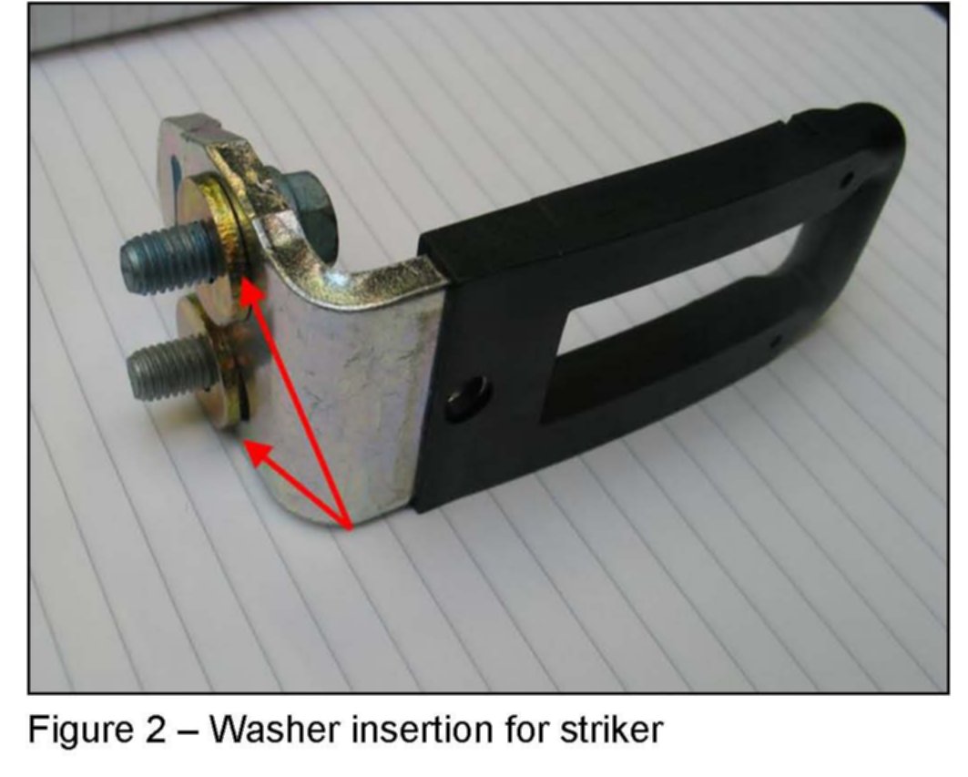 3) Reinstall striker Note: Torque specifications on striker screws are 30 +/- 3Nm.