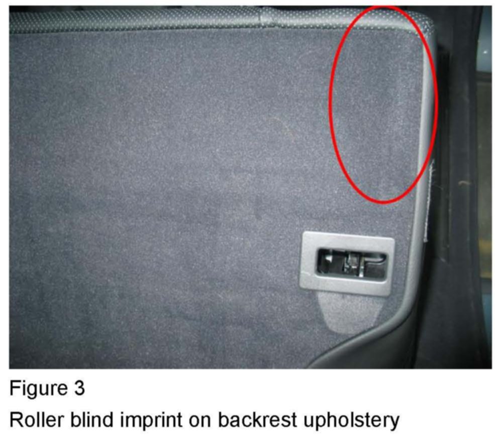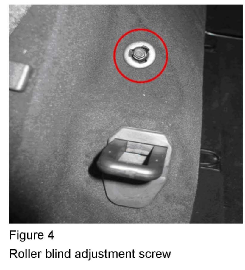 There will likely be a heavy imprint from the roller blind on the backrest trim (Figure 3). Assess this improper alignment by adjusting the roller blind stop (Figure 4).