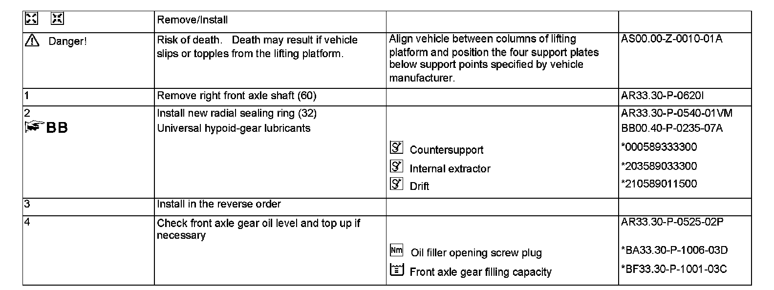 AR33.30-P-0540VM Install New Radial Sealing Ring on Outside Right of Front Axle Gear