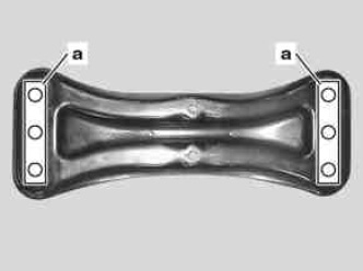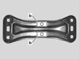 3 Depending on the correction insert the shop-made shims between the rear engine crossmember (34) and frame floor or between the rear engine mount and the rear engine crossmember (34).