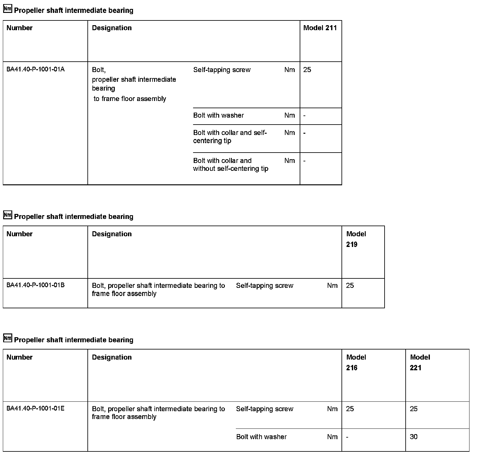 5 Screw in bolts (7a) for propeller shaft center support bearing