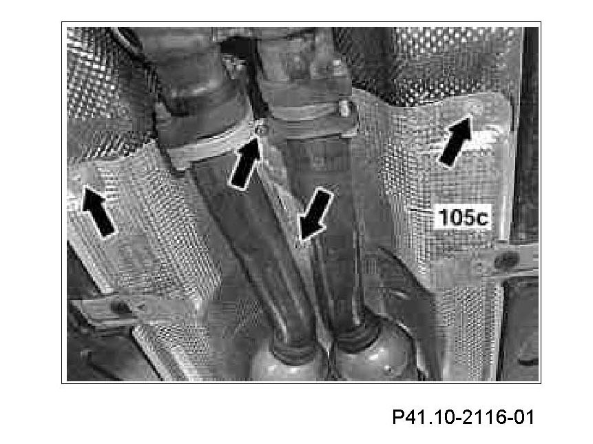 4 Insert shop-made shims between frame floor assembly and propeller shaft center support bearing (arrows).