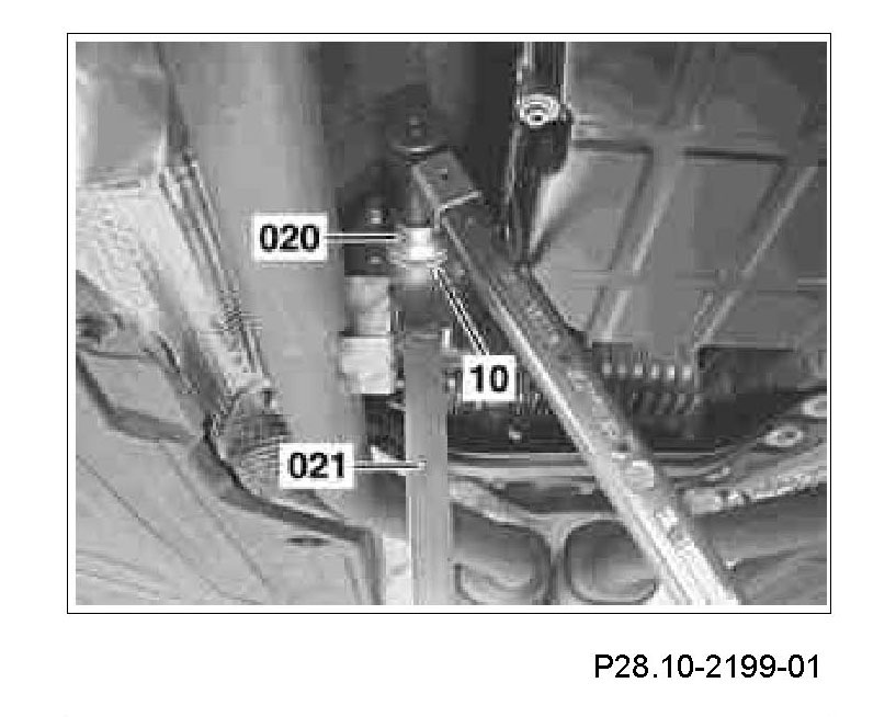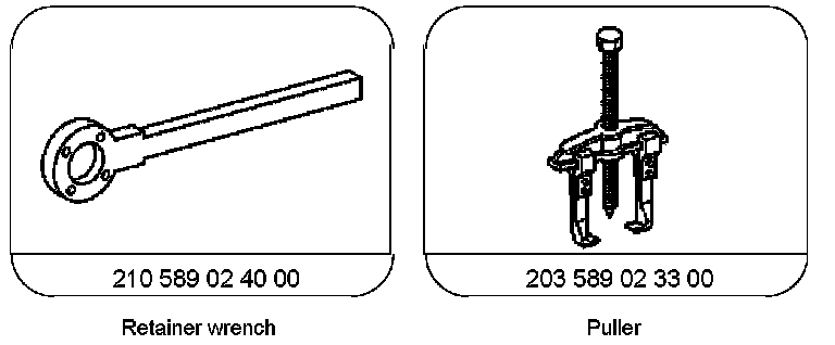 1 Mount retainer wrench (021) on front axle output flange (10).