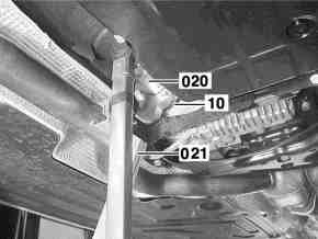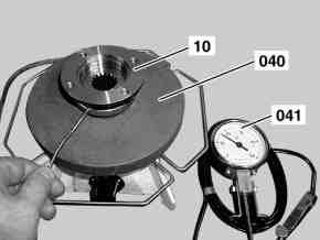 4 Screw retainer wrench (021) onto front axle output flange (10).