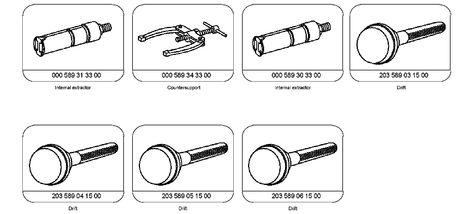 5. Press tapered roller bearing outer race (1a), tapered roller bearing outer race (2a) and tapered roller bearing outer race (3a) into front section of transmission housing (16a). To do this, use the following drifts: