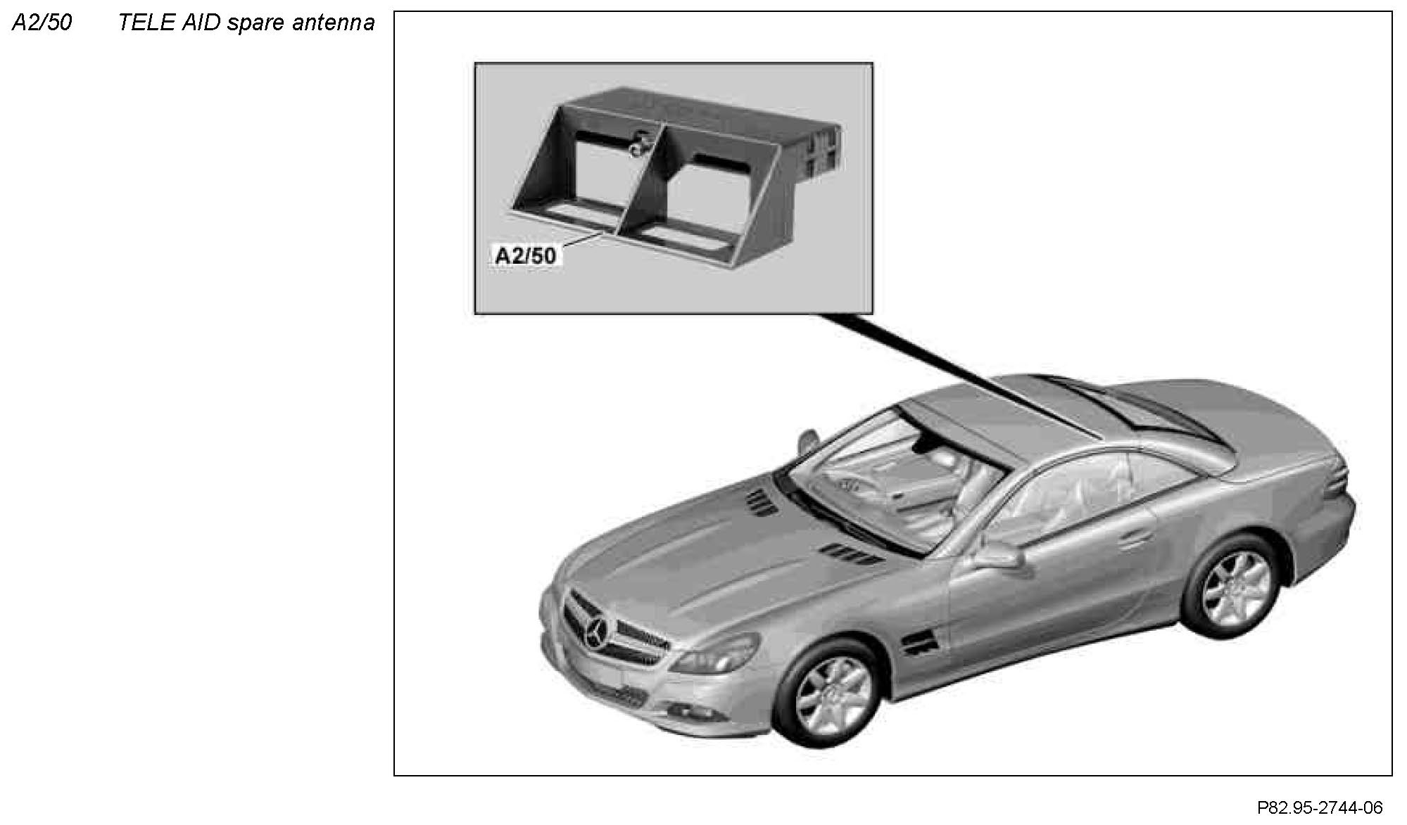 The TELE AID backup antenna is located in the rear in the area between the head restraints.