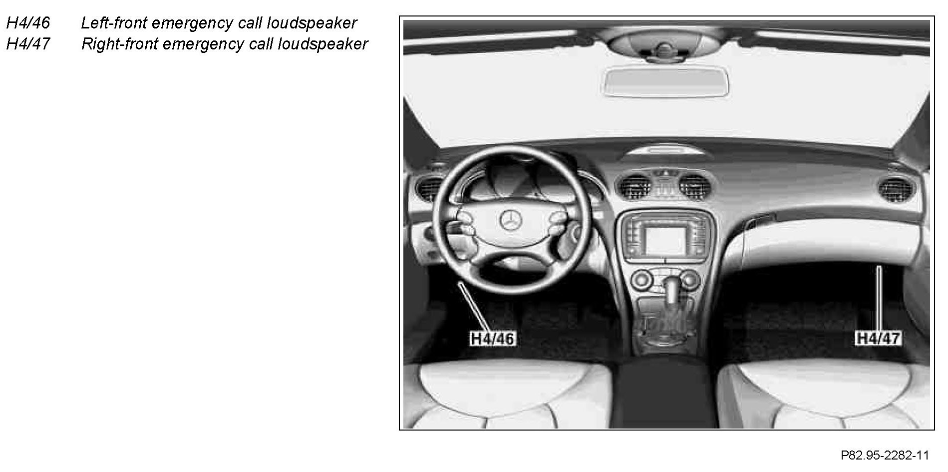 The left front and right front emergency call loudspeakers are located, depending on the national version,