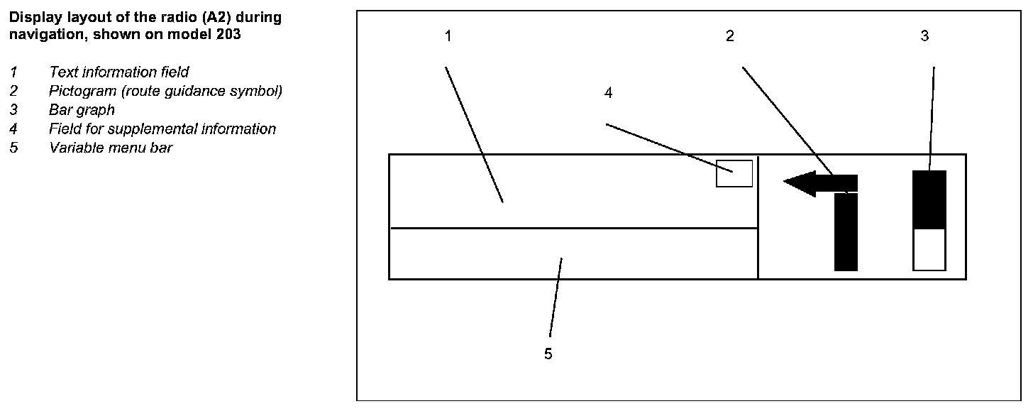 When traveling within the digitized map area, the following information calculated by the navigation processor is available to the user (partially to be called with "I" (INFO) button):