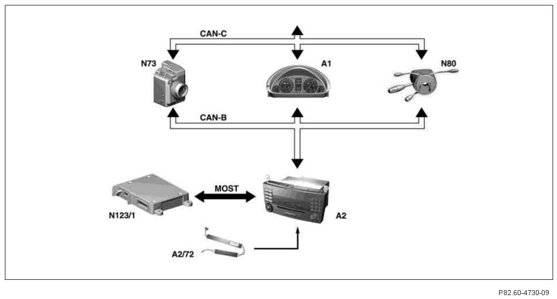This information is evaluated by the radio (A2) and shown on the display if the following prerequisites are met: