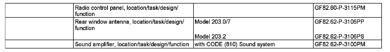 The amplifier module 2, window antenna (A2/72) and the amplifier module 3, window antenna (A2/73) receive frequency-modulated (FM) and amplitude-modulated (AM) high-frequency signals and long wave (LW) and short wave (SW), filter the frequencies of the radio frequency bands and amplify them. The amplified signals are subsequently transmitted to the radio receiver via a coaxial cable. The radio receiver demodulates the high frequency signals, in other words it separates the useful information (audible frequencies) from the carrier signal (inaudible). The demodulated audio signals are amplified and converted to sound signals by the vehicle speakers.