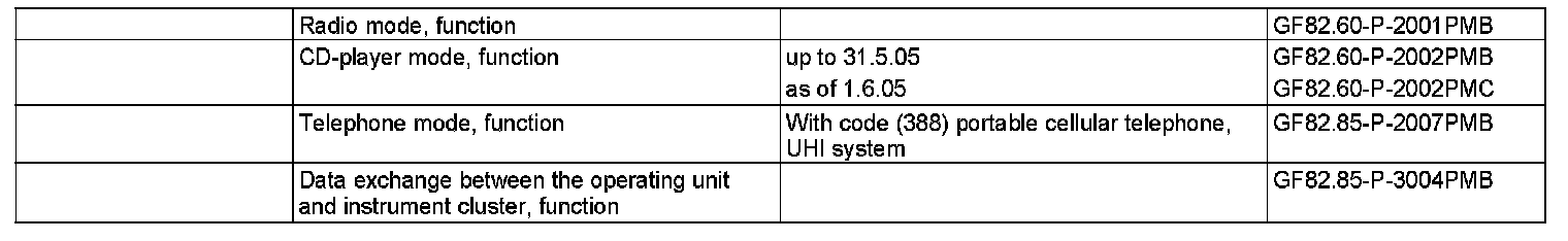If the user presses the "Mute" function key, the audio source currently being listened to is muted and the CD drive is switched to a pause status. The "Mute" function status can also be triggered automatically. If a telephone system (with code (388) Telephone "portable CTEL", UPCI system) is installed in the vehicle, the radio and navigation unit (A2/56) switches over to telephone mode when a telephone call is received and accepted. The audio source is muted.