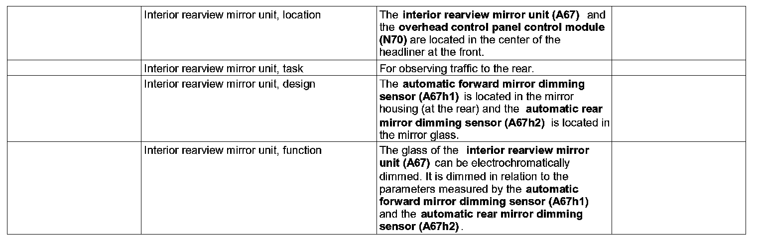 1 Interior rearview mirror unit (A67)