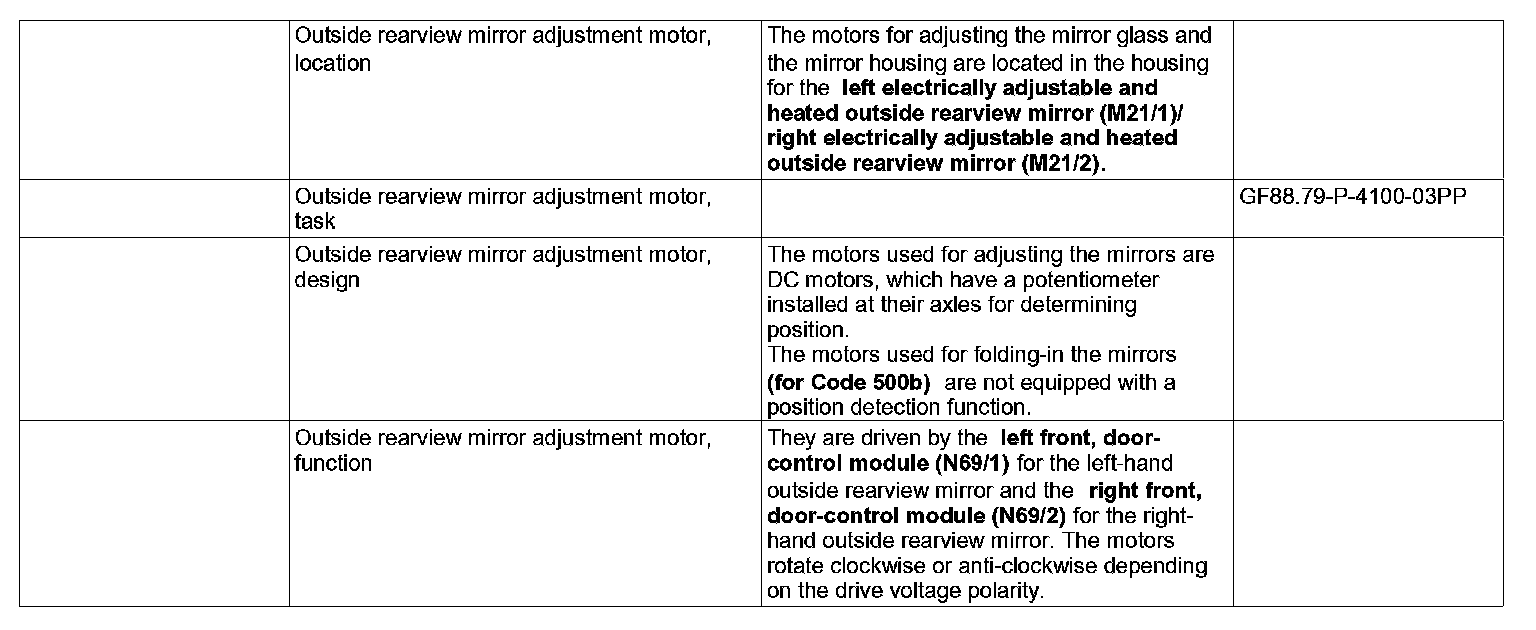 GF88.79-P-4100PP Outside Rearview Mirror Adjustment Motor Location/Task/Design/Function