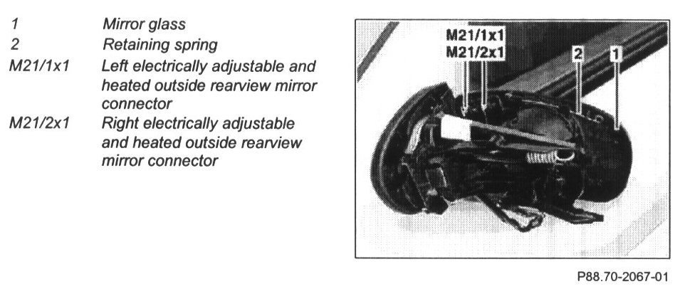 NOTE: Left electrically adjustable and heated outside rearview mirror (M21/1x1), right (M21/2x1) connectors
