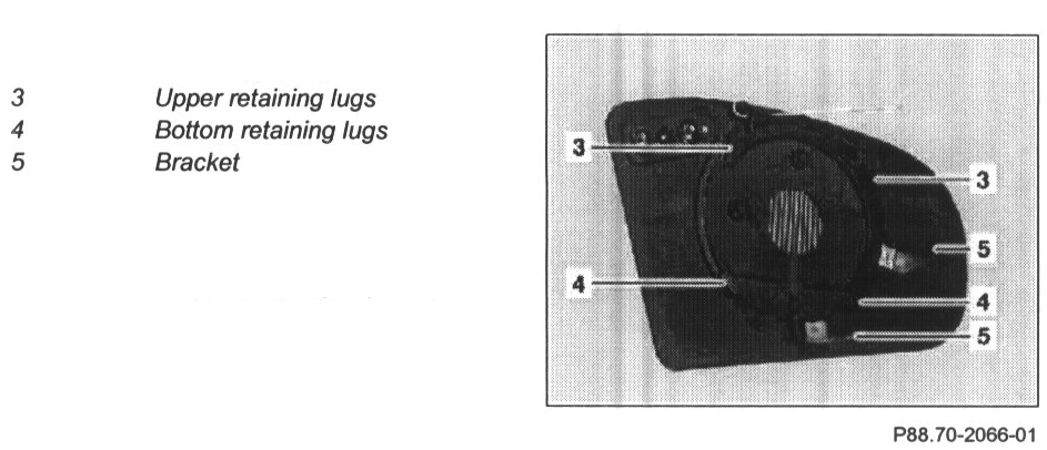 NOTE: Installation: First move mirror glass (1) with brackets (5) into retaining pockets at bottom of drive