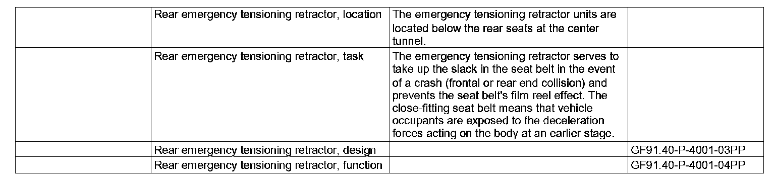 GF91.40-P-4001PP Rear Emergency Tensioning Retractors, Location/task/design/function