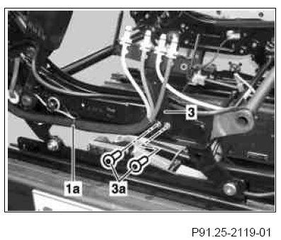 2. Route pneumatic lines (1a) along the seat frame and clip into the bracket.
