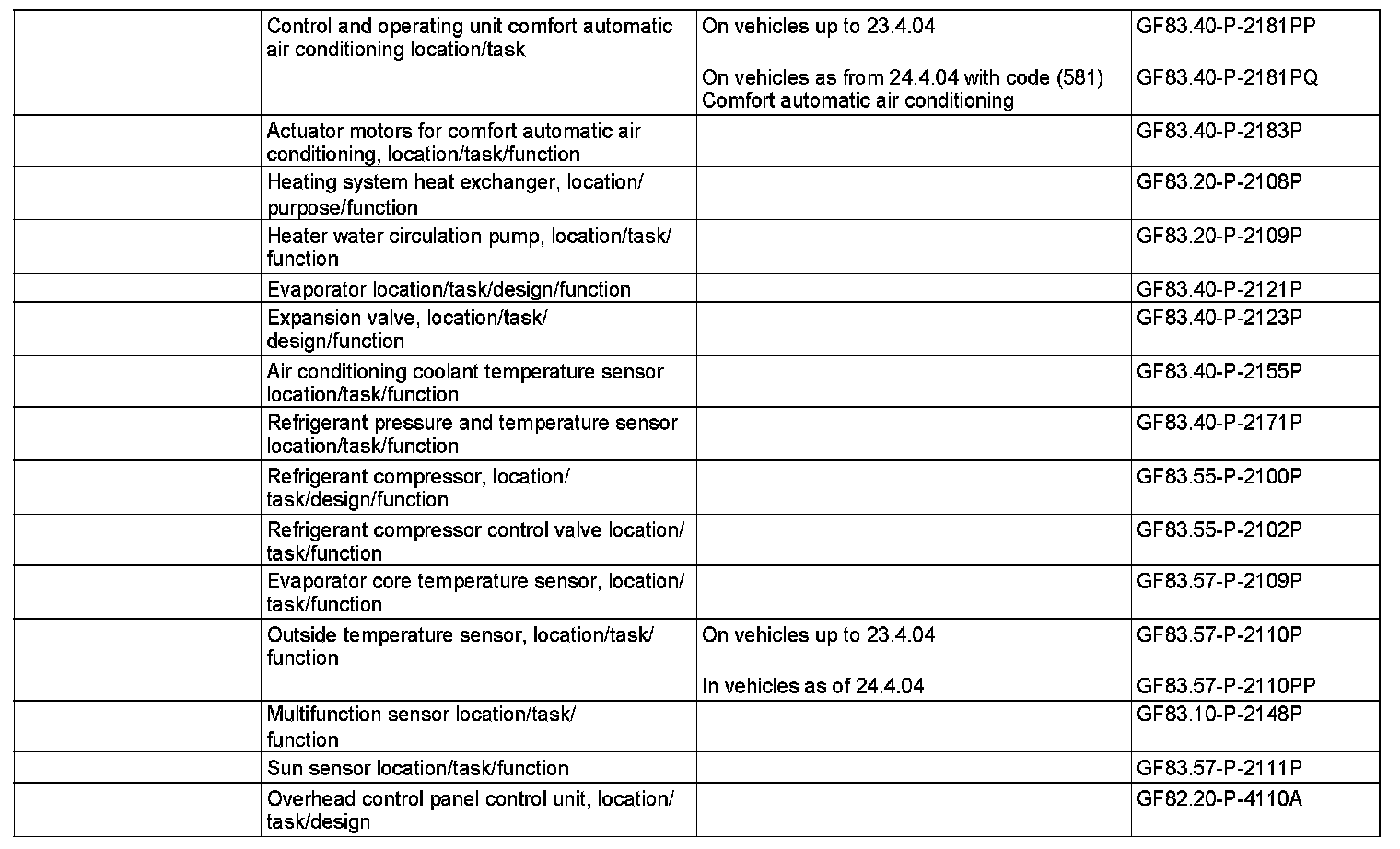 The in-car temperature sensor (N70b1) is installed in vehicles up to 31.5.02 and as from 1.6.05 in the overhead control panel control unit. On vehicles between 1.6.02 up to 31.5.05, the interior temperature is determined solely by the in-car temperature sensor (N22/7b1), which is integrated into the comfort AAC control and operating unit (N22/7).