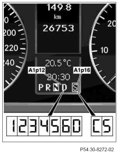 In the transmission mode display (A1p16) the driver is shown the transmission mode selected at the transmission mode switch (S16/5), sport program (S) or comfort program (C).
