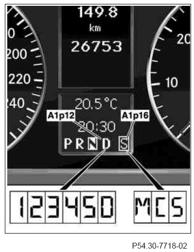 Gear indicator (A1p12) in the instrument cluster (A1) in the sport program "S" and comfort program "C"