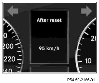The display appears when the transmitter key (A8/1) is turned to position 2 (circuit 15 ON) depending on the setting (kilometers or miles) and national version coding of the instrument cluster (A1). The value displayed is updated once a second.