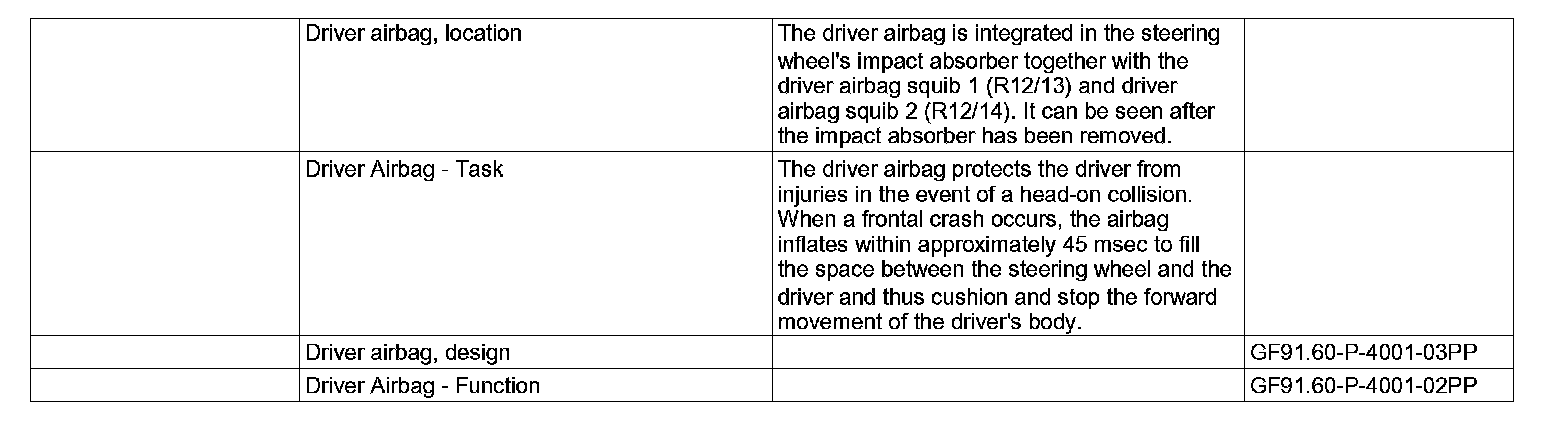 GF91.60-P-4001PP Driver's Airbag, Location/task/design/function